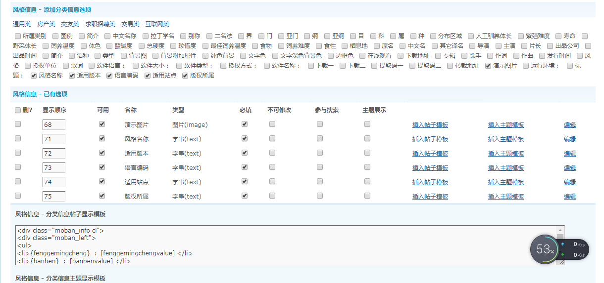 最后到版块管理→编辑版块→分类信息→启用分类信息:是→选择(风格信息)提交